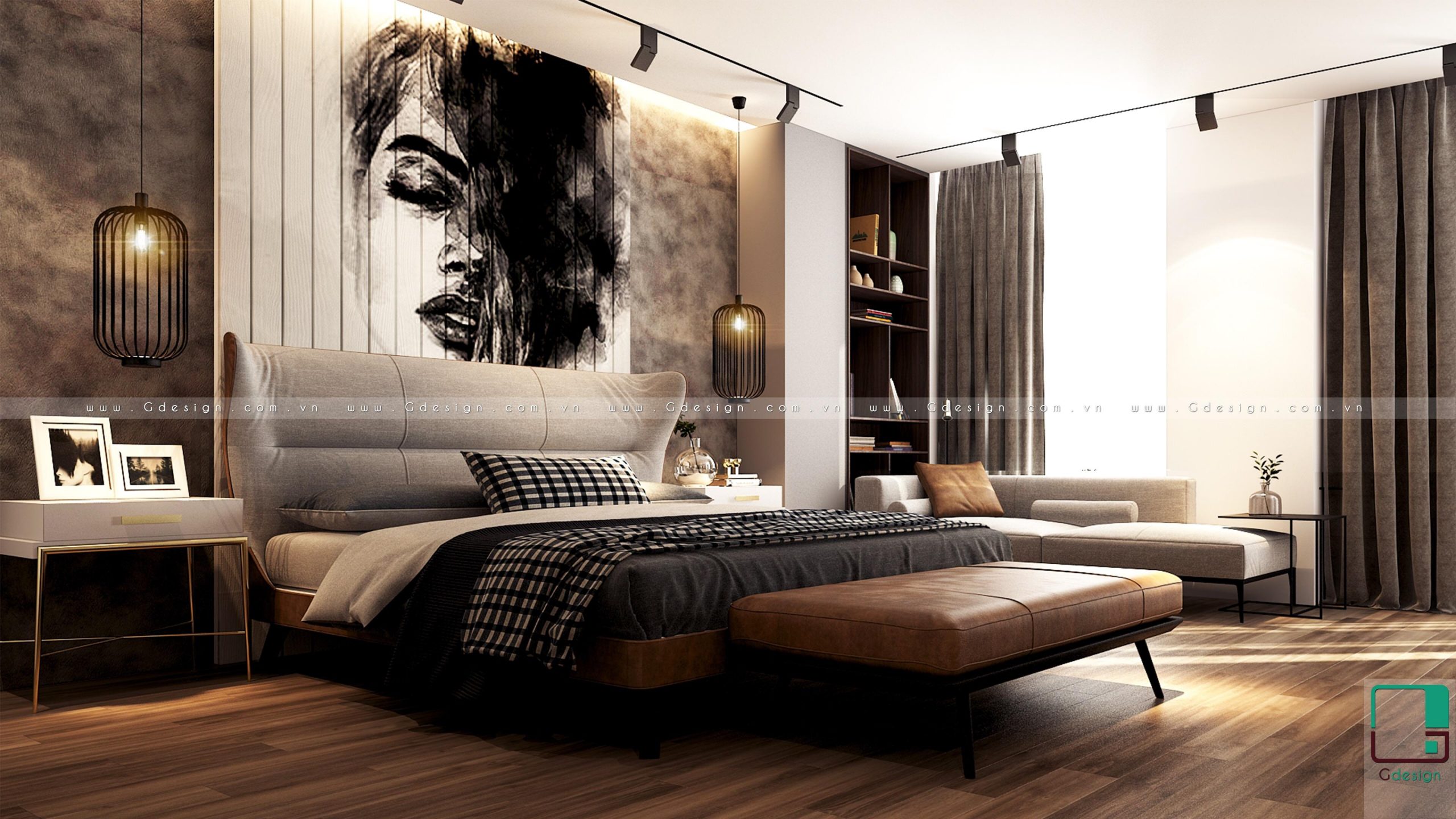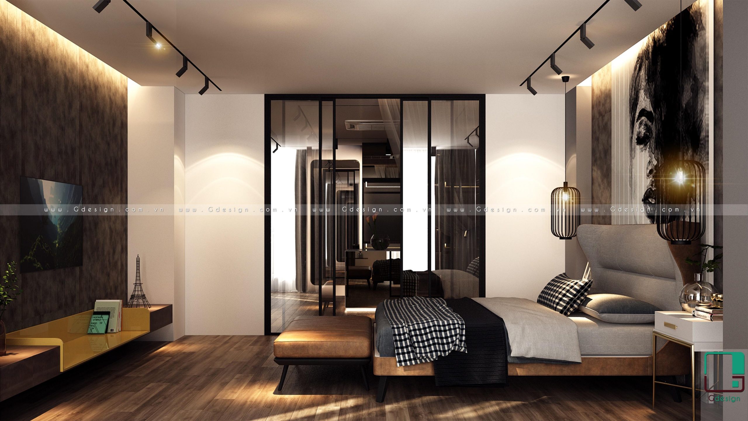 Là căn phòng ngủ có diện tích lớn nhất trong nhà nên phòng ngủ Master được thiết kế và trang bị đầy đủ tiện ích để gia chủ được thư giãn và tận hưởng cuộc sống theo cách thoải mái nhất. Ánh sáng cũng được cung cấp đầy đủ với hai nguồn sáng chủ yếu là ánh sáng tự nhiên từ bên ngoài khung cửa sổ lớn và hệ thống các đèn chiếu sáng trong phòng.